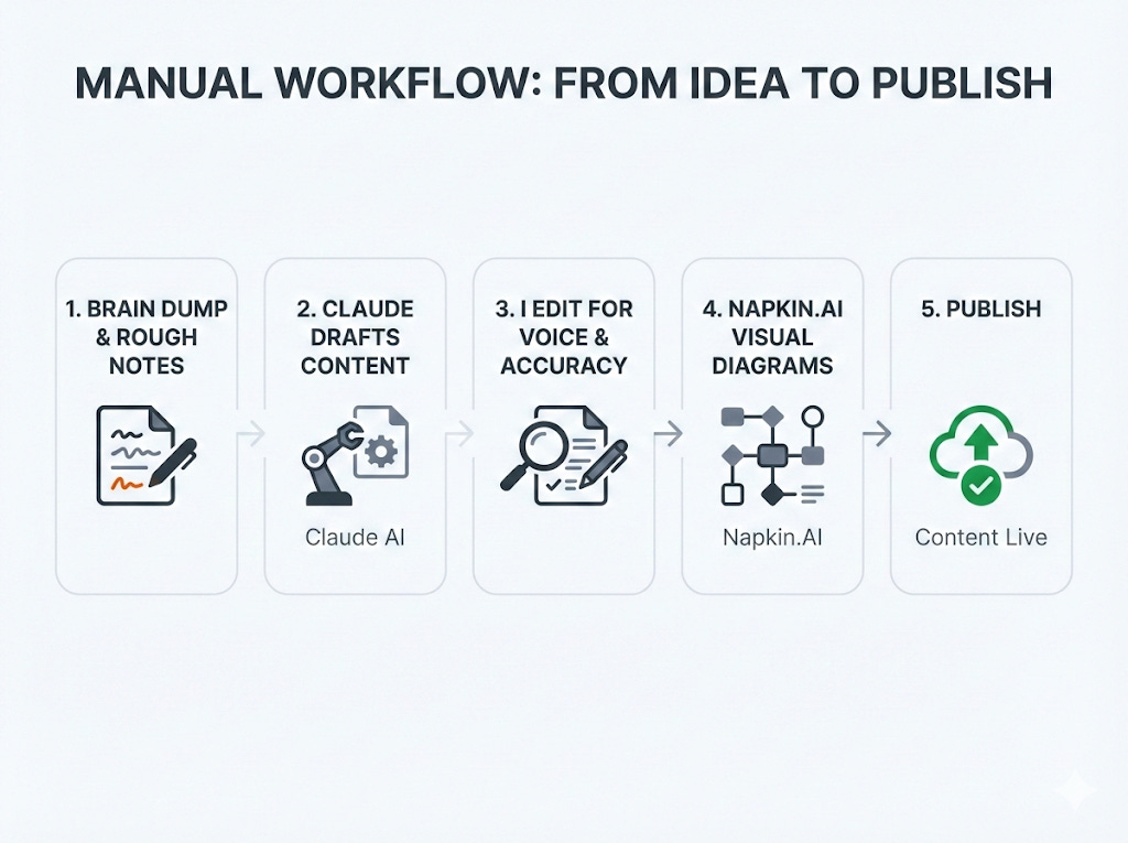 Napkin is newer in my stack. When a concept needs to be visual—a workflow, a framework, a process—Napkin gets me 80% there in minutes. The visuals you see in this newsletter? That’s the combo working.
