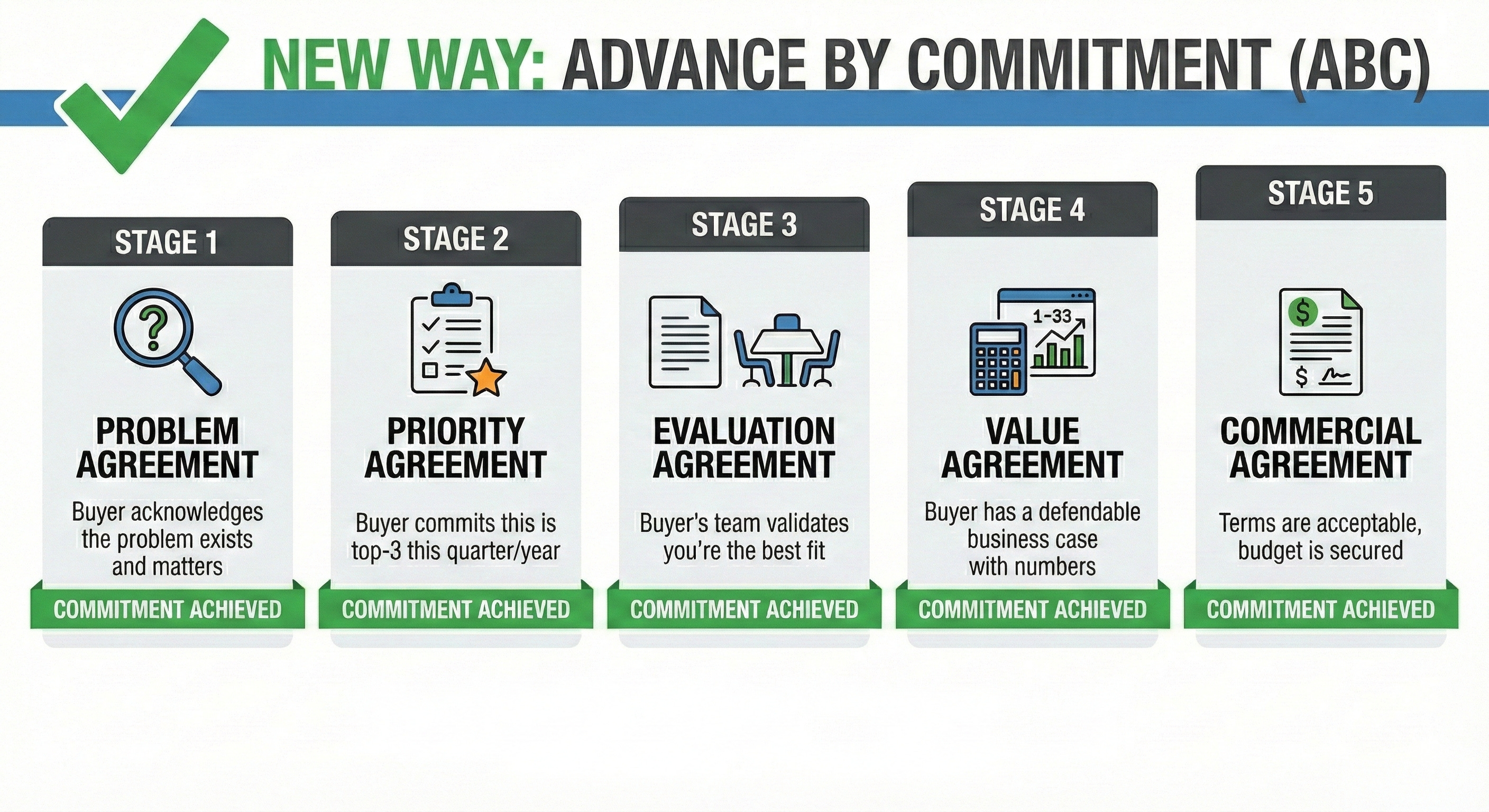 Stop asking “What’s the next meeting?” Start asking “Which agreement am I securing?”
